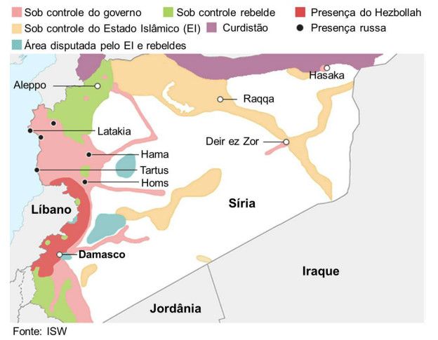 Opõe-se a: Estado Islâmico e outros rebeldes.