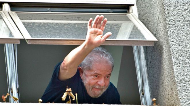 Lual acena para simpatizantes: presidente é investigado por suposta posse do tríplex no Guarujá, que ele nega |
