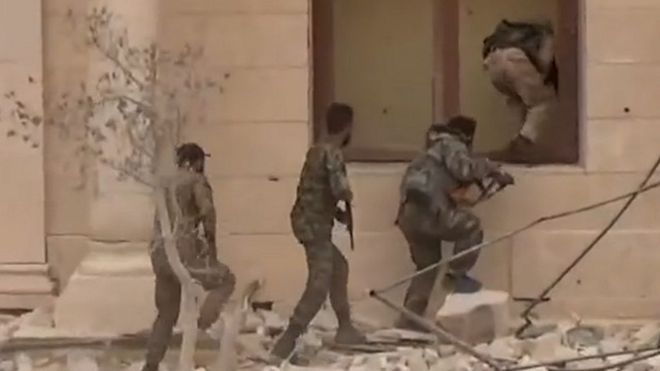 O Observatório Sírio para Direitos Humanos, um grupo de monitoramento da guerra síria com base na Inglaterra, afirmou que ainda havia tiroteios no leste da cidade, mas que a maior parte das forças do EI havia recuado.