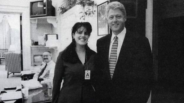 Indagado se havia mantido "relações sexuais" com a estagiária Monica Lewinski, Clinton negou. Posteriormente, porém, o sêmen do presidente foi encontrado na roupa de Lewinski.